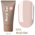 Акрил-гели низкотемпературные, мелкозернистые, жесткие, пластичные в работе и густые по консистенции. Не пекут в лампе и очень хорошо пигментированы. Легкие в нанесении и хорошо держат арку ногтя.