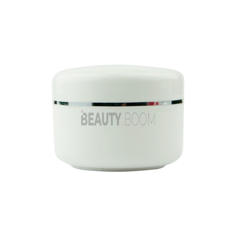 Очень удобная баночка белого цвета (не пропускает солнечный свет), с крышкой на резьбе и дополнительной пластиковой мембрной, которая не даст гелю разтекаться при транспортировании.