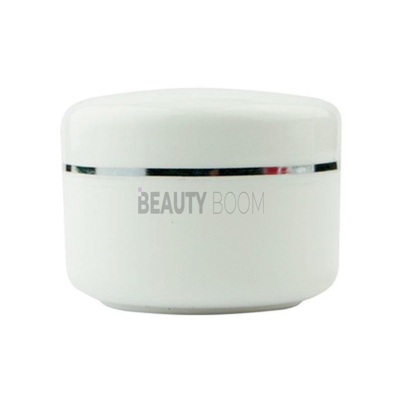 Очень удобная баночка белого цвета (не пропускает солнечный свет), с крышкой на резьбе и дополнительной пластиковой мембрной, которая не даст гелю разтекаться при транспортировании.