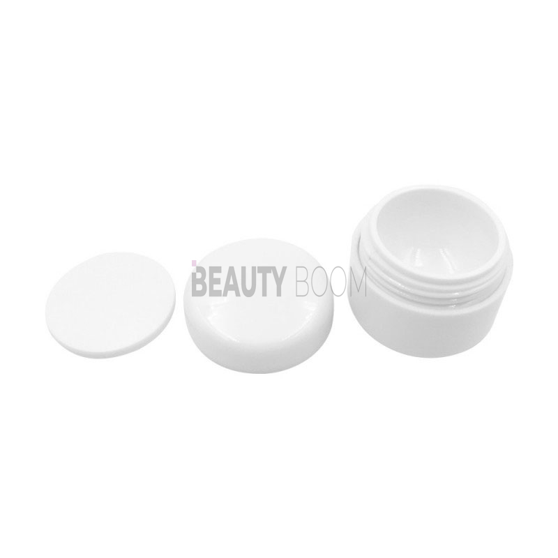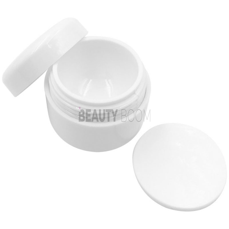 Очень удобная баночка белого цвета (не пропускает солнечный свет), с крышкой на резьбе и дополнительной пластиковой мембрной, которая не даст гелю разтекаться при транспортировании.