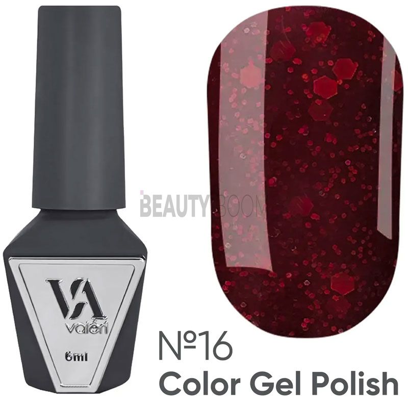 Гель-лак Valeri №016 (бордовый с блестками), 6 мл