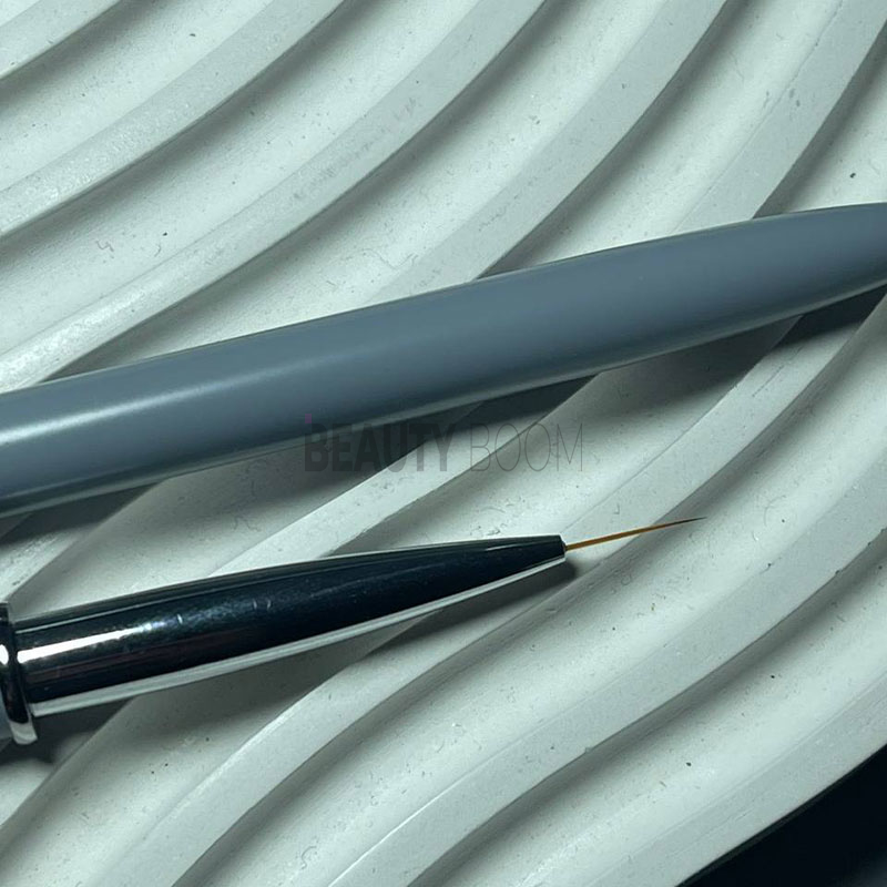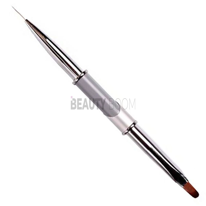 Многофункциональная двусторонняя кисточка с одной стороны имеет овальную форму, такой вариант позволяет работать с акрилом и гелем. Форма ворса с другой стороны кисточки – тонкая и удлиненная, предназначенная для прорисовки тонких линий.