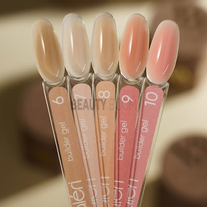 Valeri Builder Gel Collection – це колекція гелів, які використовуються як для нарощення нігтів, так і для корекції й укріплення нігтьової пластини. Гелі низькотемпературні, тверді, середньої густини (гель Valeri 3-5 мають трішки рідшу консистенцію) за рахунок чого дуже добре самовирівнюються, але не затікають. Пігментація – середня. Легкі у нанесенні та добре тримають арку нігтя.