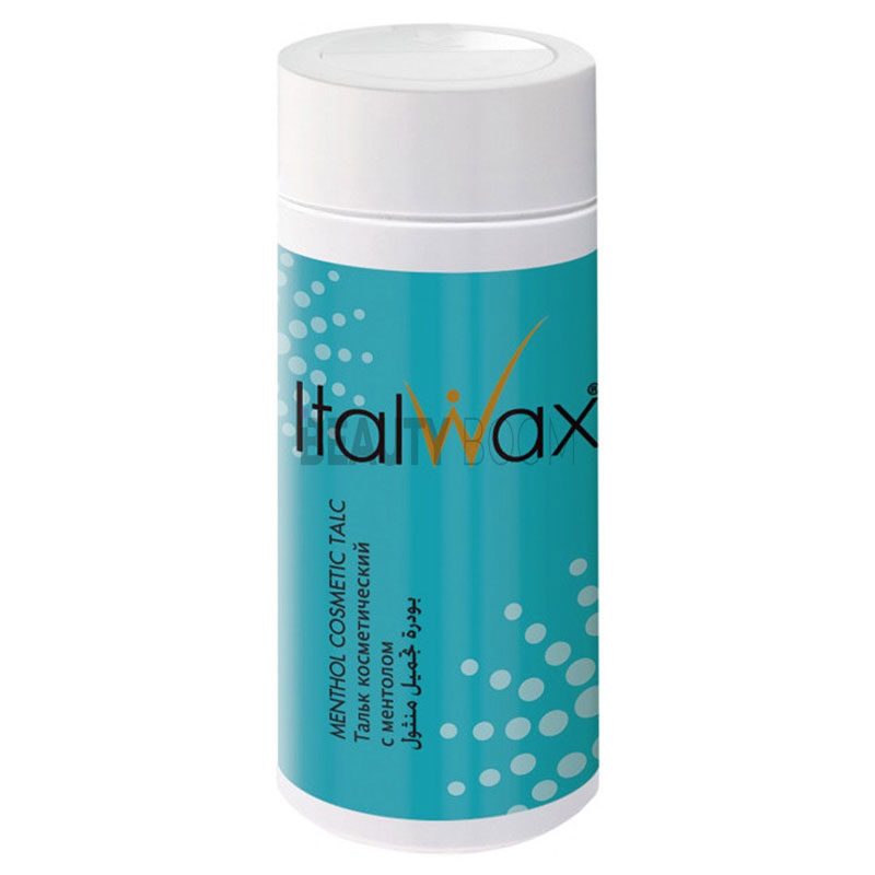 Тальк косметичний з ментолом Ital Wax - незамінний допоміжний засіб під час воскової депіляції та видалення волосся методом шугарінгу. Він дозволяє правильно підготувати необхідну ділянку до процедури та забезпечує відмінне зчеплення воску або пасти з волосками. Абсорбуючі властивості присипки дозволяють оперативно підсушити шкіру, коли в цьому виникла потреба. Ментол, що входить до складу, знижує хвороби відчуття і здорово освіжає розпалену частину тіла після депіляції. Даний тальк безпечний, має високий ступінь очищення, запобігає подразненням, у складі не має оксиду цинку та парфумованих ароматизаторів.
