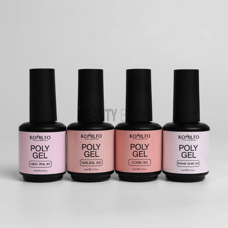 Komilfo PolyGel – це новий матеріал, який за своїми характеристиками нагадує всіма улюблений Bottle Gel, але має більш рідкісну консистенцію, не палить у лампі, самовирівнюється і дуже легкий та швидкий у роботі.