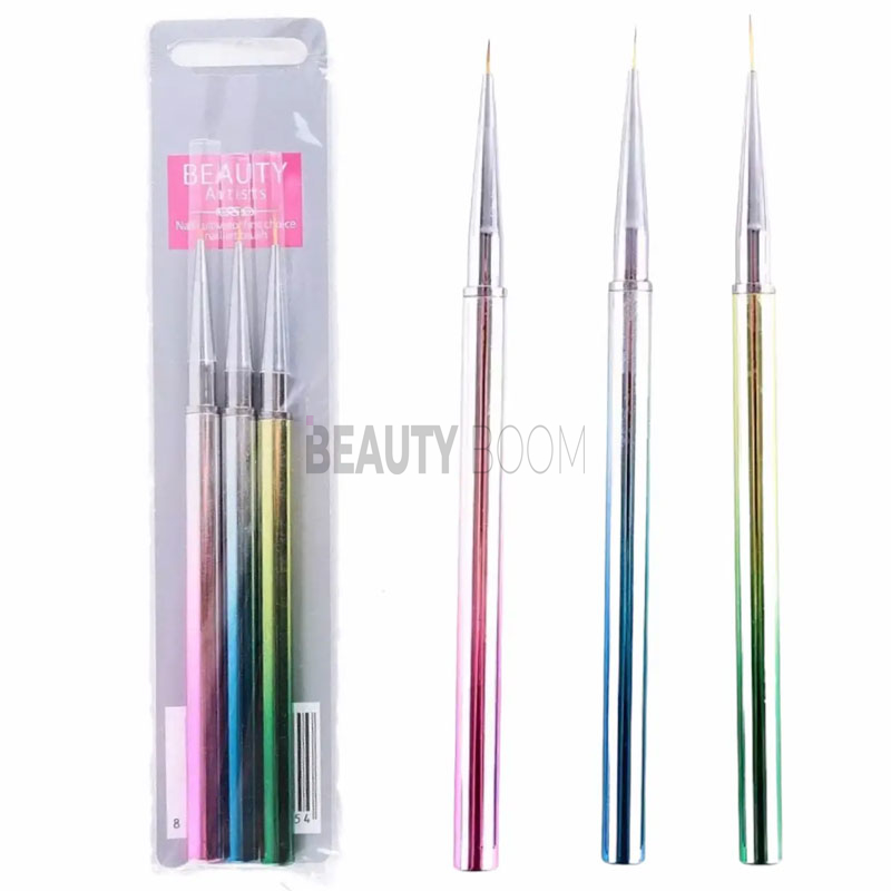 Цей набір з 3-х пензлів ідеально підходить для промальовування тонких ліній, наприклад для французького манікюру і вензелів. Щоб досягти найкращого результату, інструмент слід тримати строго вертикально, а лак або фарбу брати виключно кінчиком. Пензлики виготовлена з міцного нейлону. Відрізняється високою якістю, легко чиститься і миється.
