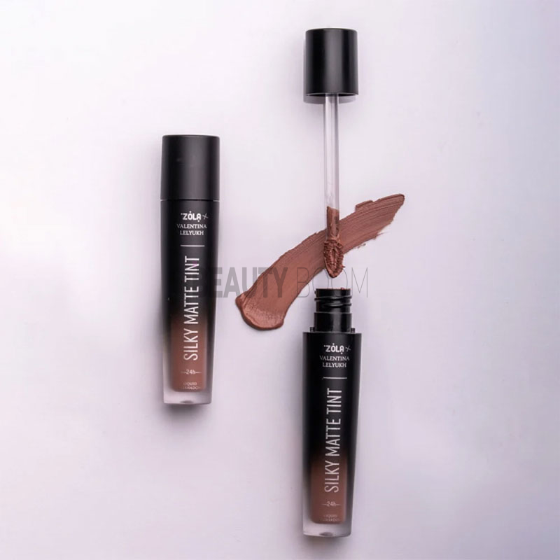 ZOLA x Valentina Lelyukh Silky Matte Tint — рідкі тіні з ніжною текстурою та оксамитовим матовим фінішем. Вони легко розтушовуються, створюючи ефект натурального переходу кольору.