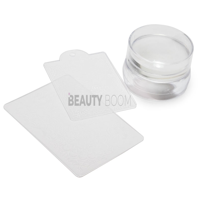 Штамп для стемпінгу із м'якою силіконовою подушкою. Завдяки абсолютній прозорості подушки, можна розмістити малюнок на нігті в точності з задуманим дизайном. Штамп із прозорою силіконовою подушкою незамінний у роботі з геометричними та симетричними малюнками, даючи можливість ідеально правильно перенести малюнок на ніготь.