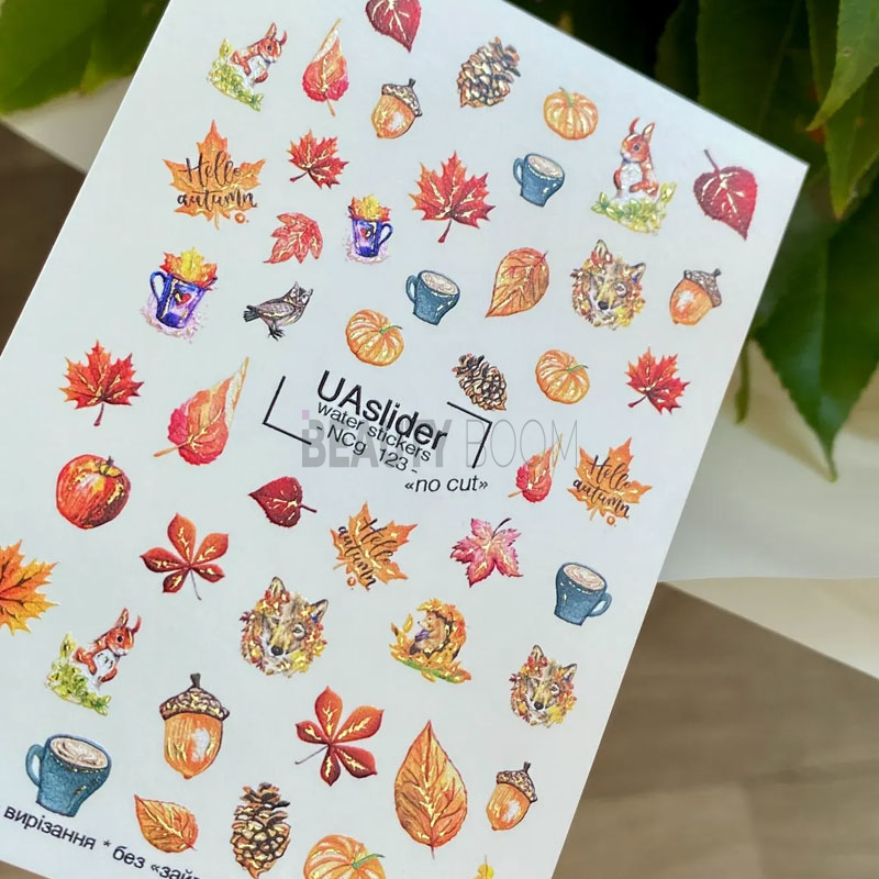 Слайдери серії NCg не потрібно вирізати, вони вже без зайвої плівки, плівка є лише по формі зображення. Достатньо розмочити слайдер або попередньо вирізану групу елементів на вологій серветці 10 сек. Пензликом змоченим в гелевій базі, так щоб він був липкий, переносимо малюнок на ніготь. Закріплюються такі слайдери так само як звичайні.