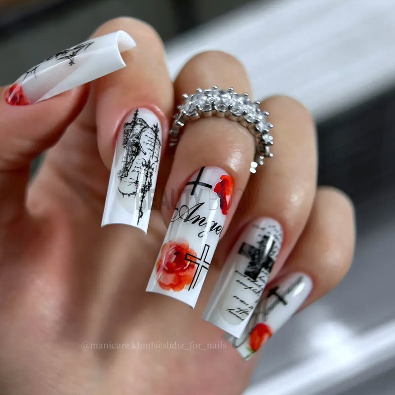 Слайдер-дизайн - зручний, красивий і доступний нейл-декор, який успішно відтворює на нігті художні візерунки, малюнки та композиції. Він складається з тонкої еластичної плівочки з малюнком і паперової підкладки. Завдяки високій якості та чіткості дизайн зі слайдерами мало чим відрізняється від виконаного пензликом та фарбами, дуже часто перевершує його за акуратністю, виглядає ефектно та стильно. При цьому процес створення такого манікюру не забирає багато часу та не потребує художніх навичок. Крапелька терпіння та гарні малюнки на нігтиках доставлять вам море позитивних емоцій! Швидко, просто та яскраво!