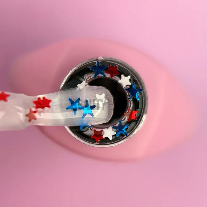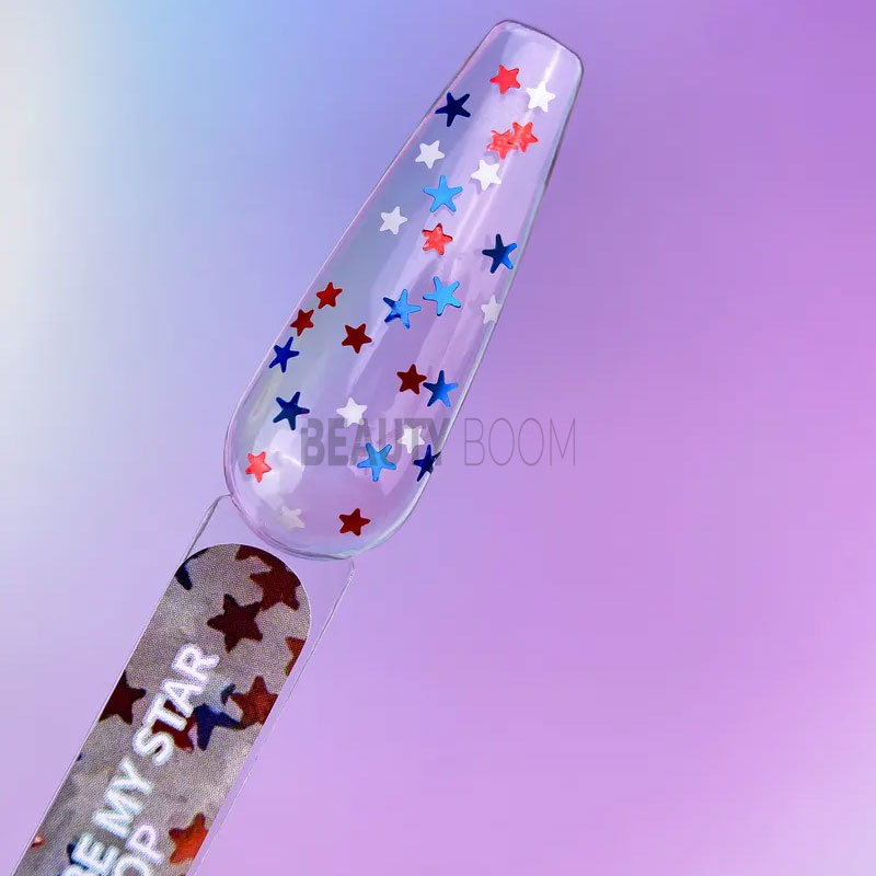 Top Be my star - це топ з зірочками, без липкого шару, який буде гармонійно виглядати з будь-яким кольором на нігтях. Він здатний зробити ваш манікюр цікавим та незвичайним.
