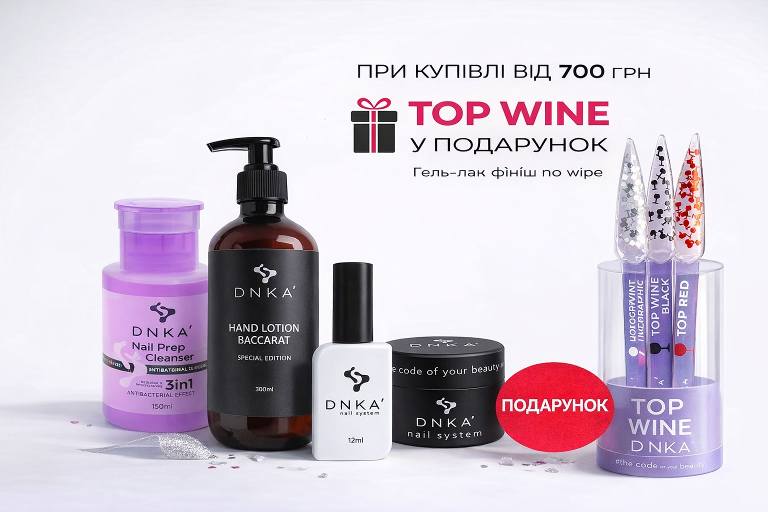 Замовляй DNKa на суму від 700 грн — і отримай в подарунок Top Wine 15 мл
